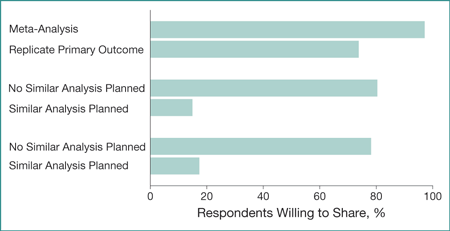 Figure. Willingness to Share by Request Type for a Trial Published 12 Months Ago