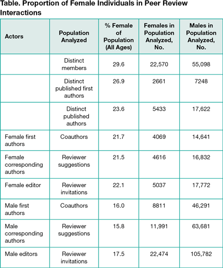 We analyzed membership demographic data and editorial data from the AGU from 2012 to 2016. We analyzed activities in the publications database, looking at demographic data for 23,985 distinct reviewers, 29,927 first authors, 97,120 reviewer suggestions by authors, and 151,484 reviewer invitations by editors. Age is important to include because the proportion of women researchers decreases as age increases; accounting for age is needed to reveal some otherwise hidden gender differences.