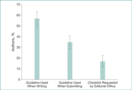 Almost 4 of 5 authors and half of the reviewers judged the guideline checklists to be useful or very useful. Using the guidelines while writing the manuscript was associated with greater impact on the final manuscript.